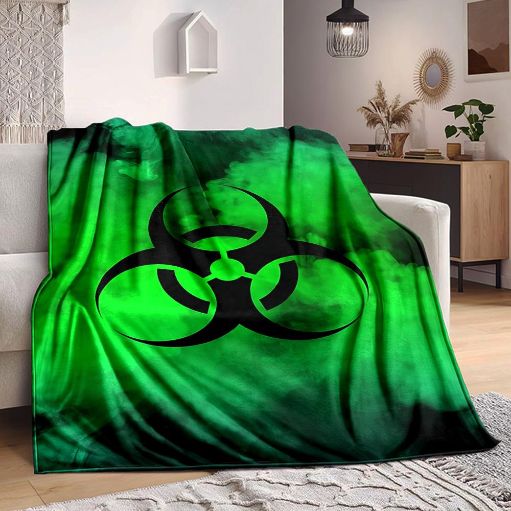 1pc Biohazard Symbol Soft Comfortable Blanket Digital Print, All Season Multipurpose Knit Fabric Bedding, Office, Sofa Home Decor Blanket