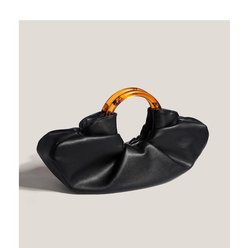Small Niche Cow Horn Bag, Internet Celebrity, Same Acrylic Ring Handbag, Women's Pleated Cloud Bag, Hand-held Dumpling Bag