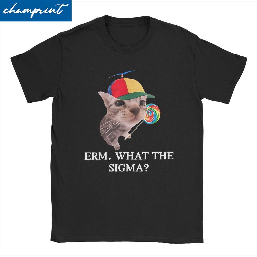 Erm What The Sigma TShirts Men Women Funny Meme Cat Crazy Pure Cotton Tee Shirt Round Neck Short Sleeve T Shirt New Arrival Top