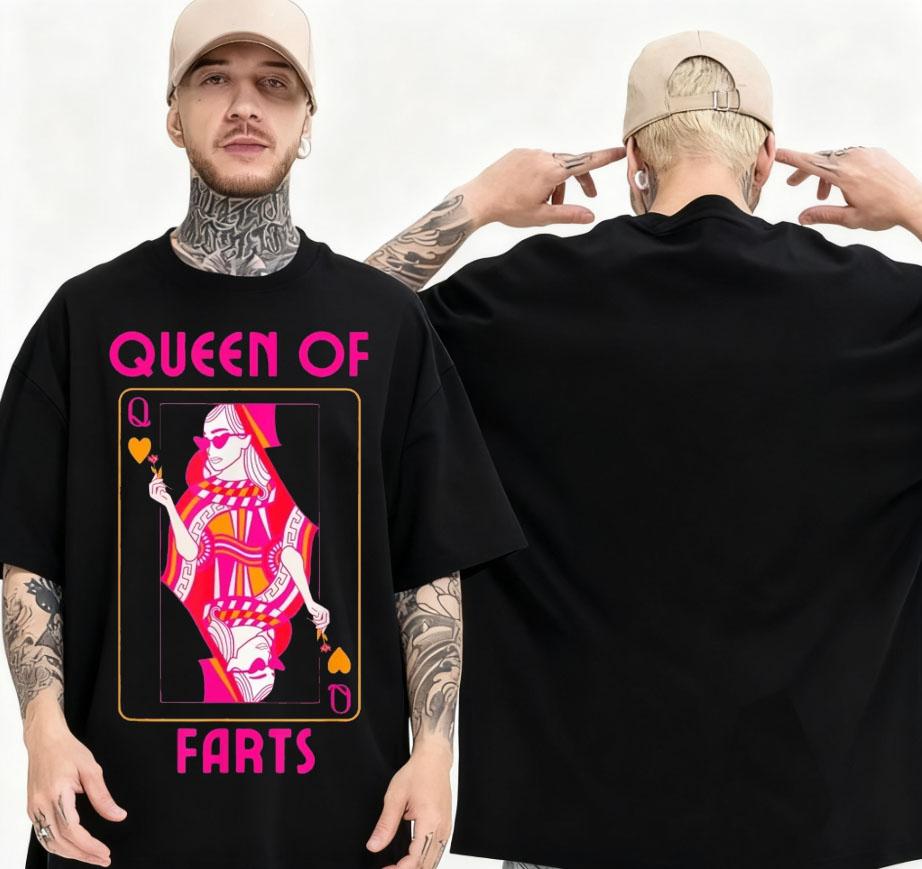 2025 Summer Fart Queen Embarrassed Joke Adult Humorous Tshirt Male Cotton Tshirt Loose Shortsleeved Shirt