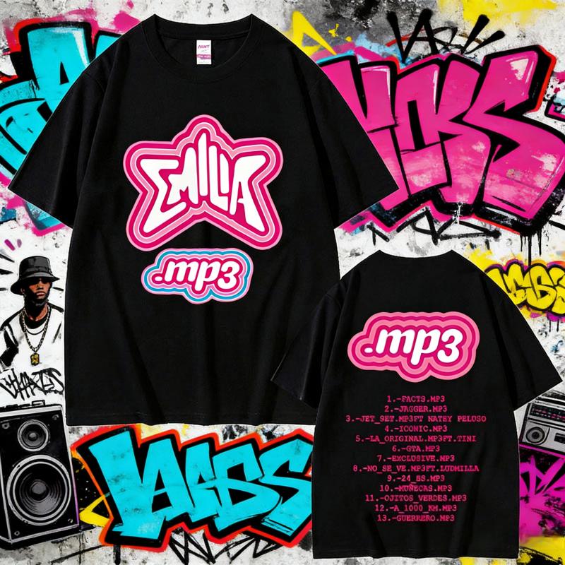 2025 Summer Singer Emilia Mernes MP3 Tour Print Tshirt Male Men Women Hip Hop Oversized Crewneck T Shirts Mens Vintage Tees