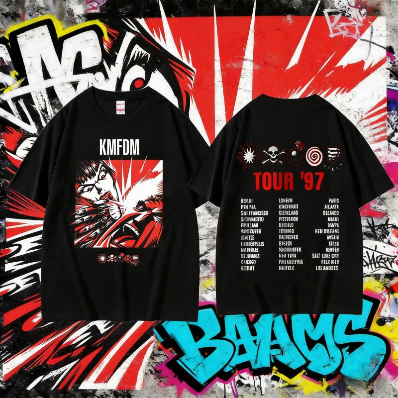 2025 Summer Rock Band Kmfdm Symbols Tour 97 Graphic Print Men Women Vintage Gothic Punk 100 Pure Cotton Printed Tshirt Y2k