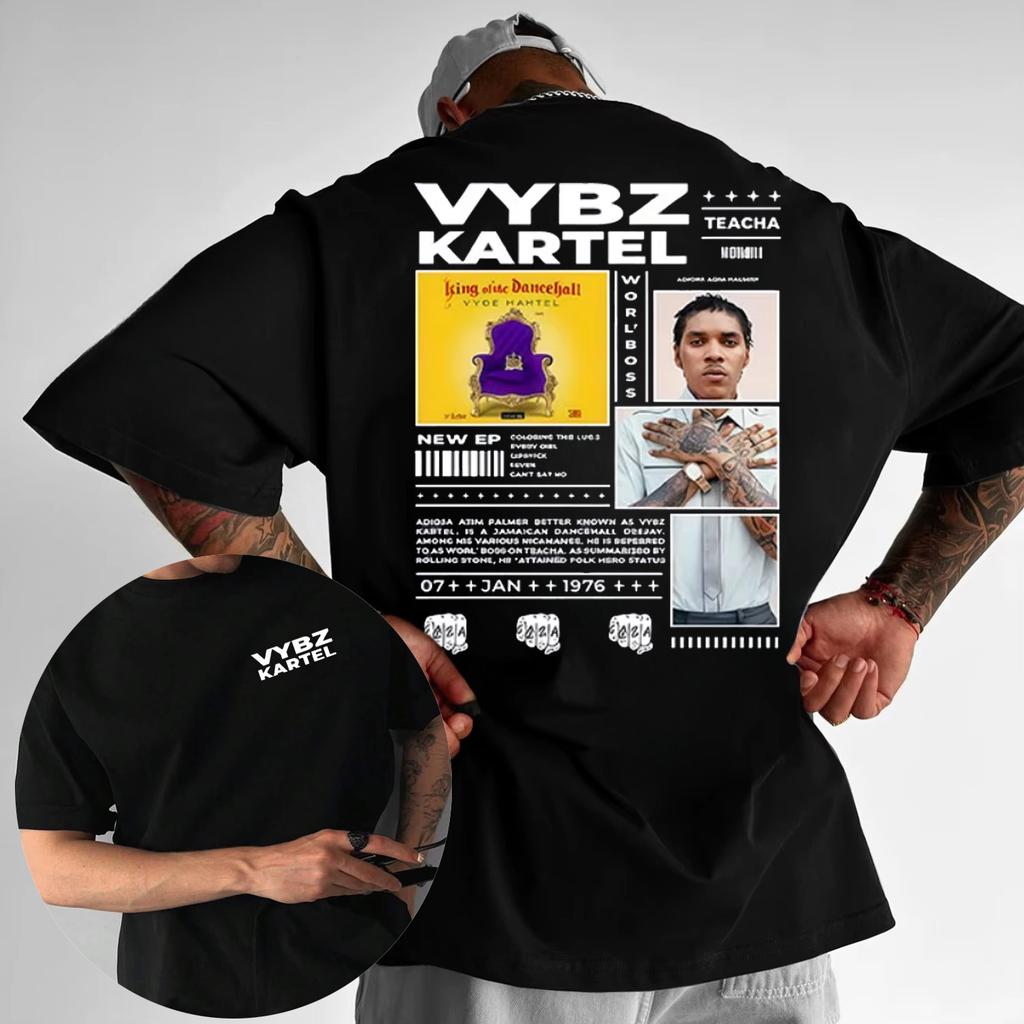 Rapper Vybz Kartel Tour 2025 Summer New Album 100 Pure Cotton Printed Tshirt Mens Hip Hop Gothic Short Sleeve High Quality