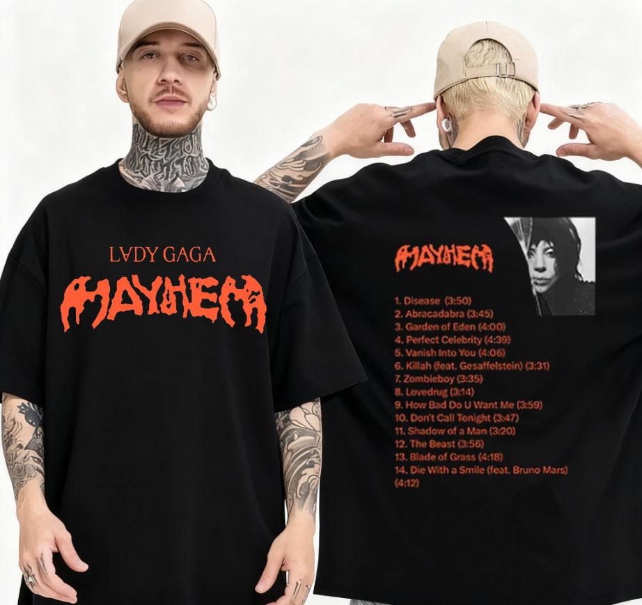 Lady Gaga Mayhem Tshirt 2025 New Album Fashion Men Summer Retro Harajuku High Quality Clothes Cotton Fan Tshirt