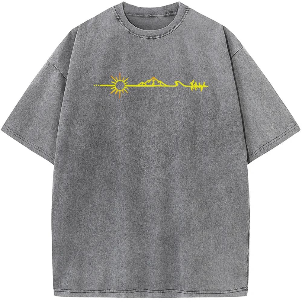 Gold Mountains Men's Short-Sleeved T-shirt 230g Fashion Casual Washed T-Shirt Vintage Summer Cotton Tshirt
