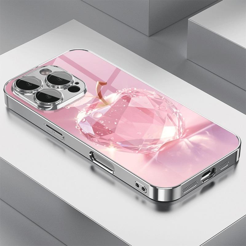 Pink Crystal For Apple Pattern Tempered Glass Electroplated Phone Case For iPhone 17 16 15 14 13 12 Pro Max Plus 16E 17Air Cover