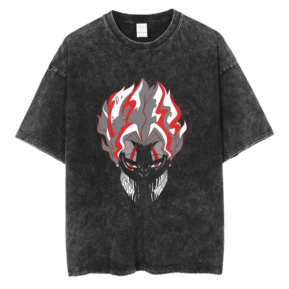 Anime Dandadan Okarun Ken Takakura Print Washed Tshirt Men Manga Vintage T-shirts Oversized Cotton T Shirt Tops