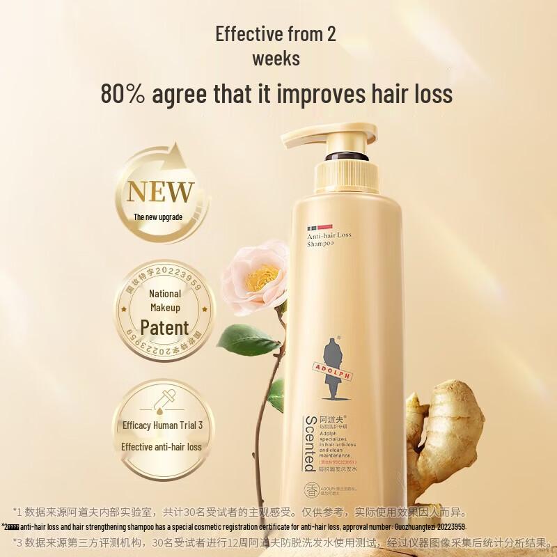 Experience the revitalizing power of Adolph Ginger Anti-Hair Loss Strengthening Shampoo. Formulated to nourish and fortify hair roots, this shampoo helps reduce hair loss while promoting stronger, healthier growth. Its oil-control properties leave your scalp feeling refreshed and clean. Ideal for sensitive scalps, it is also designed for hair strengthening.
