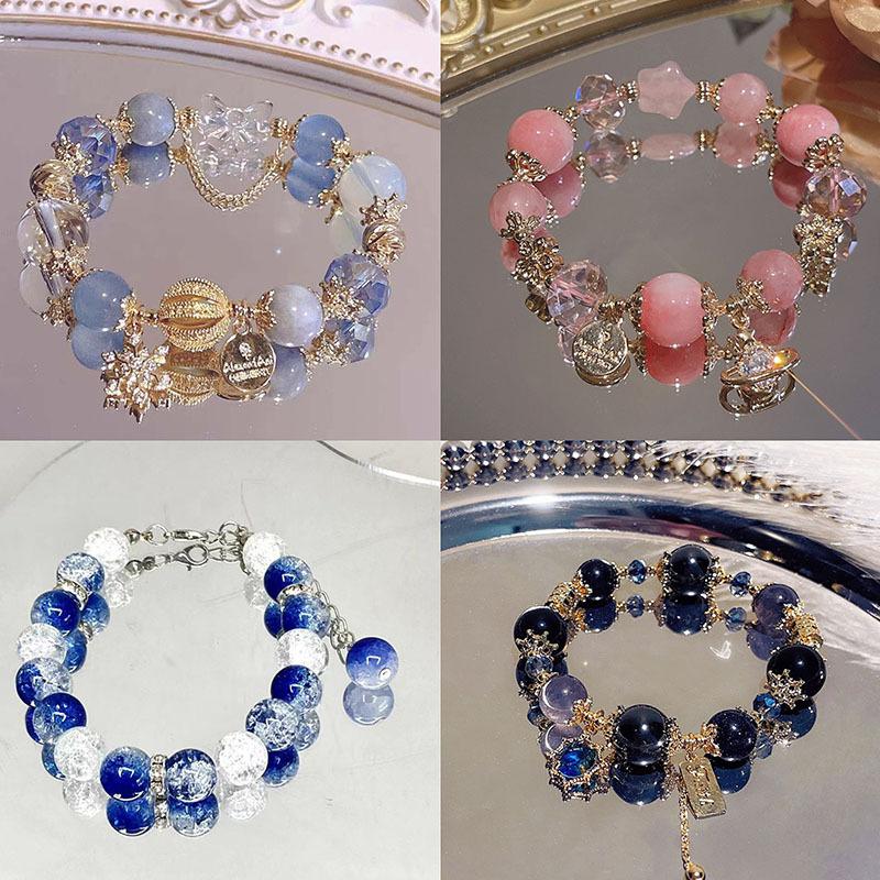 Retro court style fairy tale dream blue crystal bracelet niche design high luxury high-end sense beaded bracelet bracelet