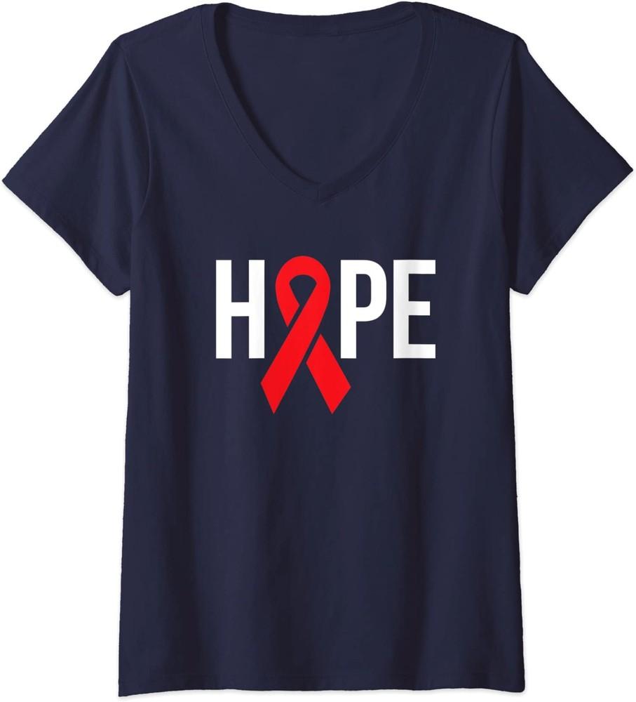 Hope Aids Hiv Red Ribbon Awareness World Aids Day Ladies' V-Neck Tshirt Unisex T-Shirt