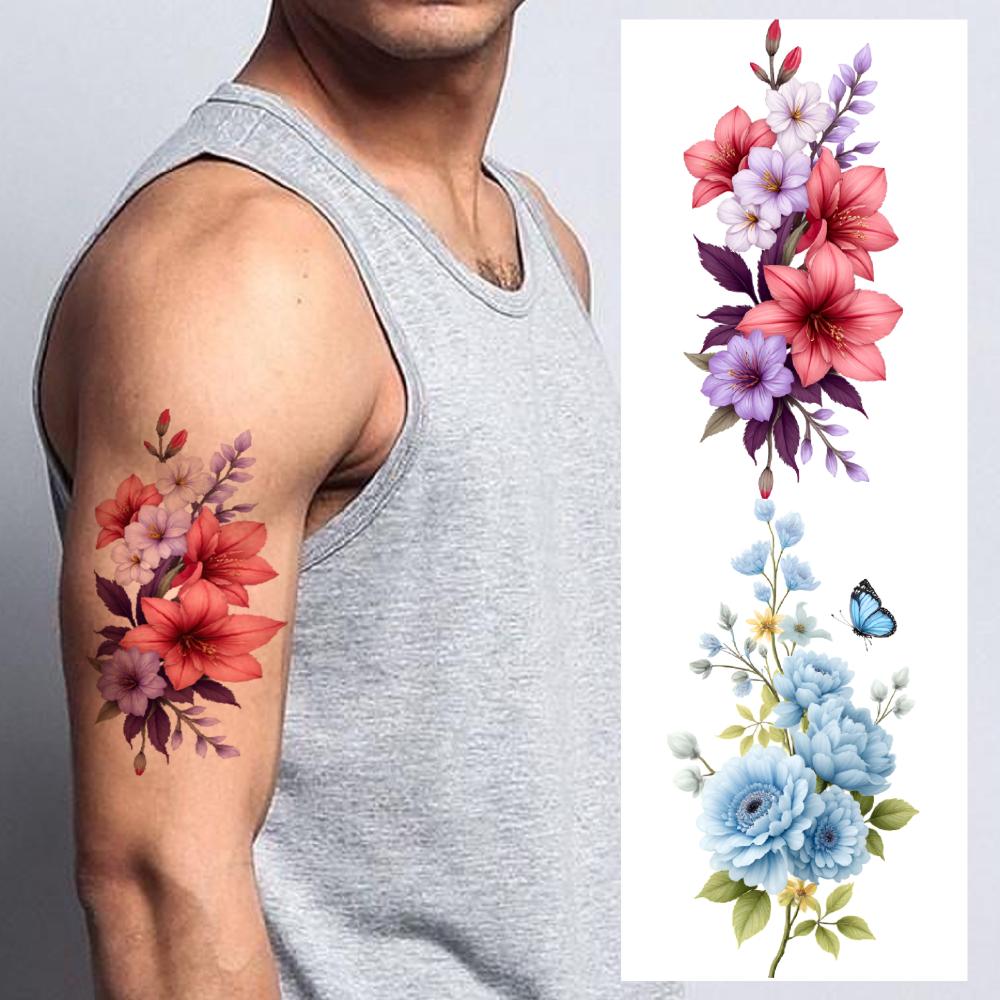 12pcs Temporary Tattoo Floral Designs Temporary Tattoo Stickers Butterflies Colorful For Back Arms Adult