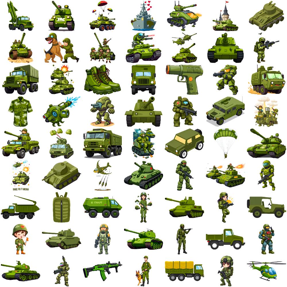 63pcs Temporary Tattoo Army Figures Temporary Tattoo Stickers Military Vehicles Tank Illustrations Cartoon For Children Girls
