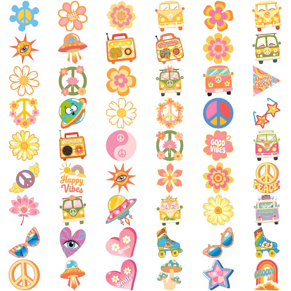 54pcs Temporary Tattoo Van Waterproof Long-lasting Body Stickers Smile Sunglasses Temporary Tattoo Stickers UFO For Women