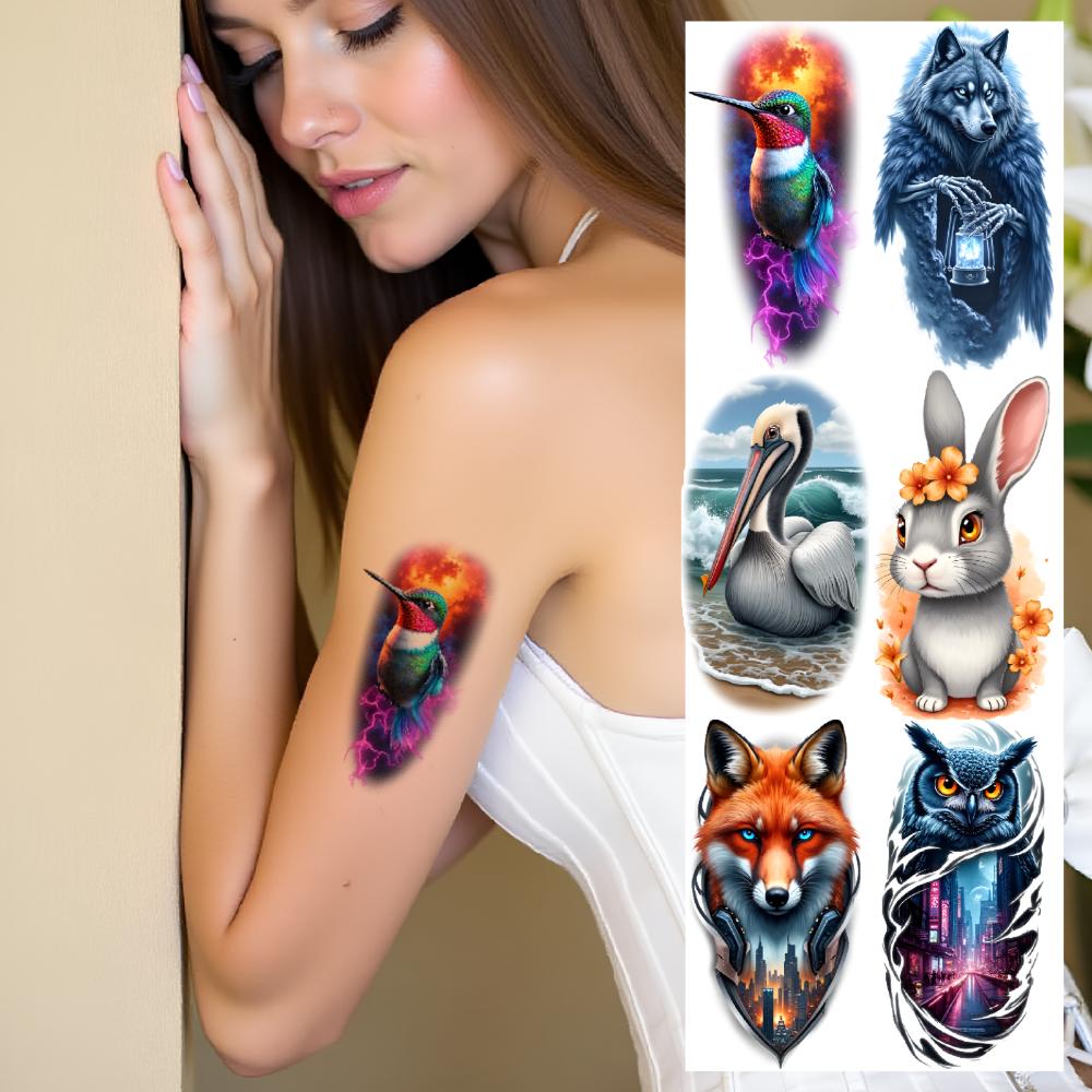 9pcs Temporary Tattoo Black Bird With Clock Realistic Temporary Tattoos Chameleon Golden Beetle With Galaxy Colorful Realism For