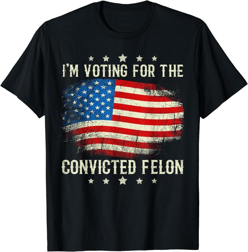 I'm Voting For The Convicted Felon Funny Retro American Flag T-Shirt S-3XL Unisex T-Shirt
