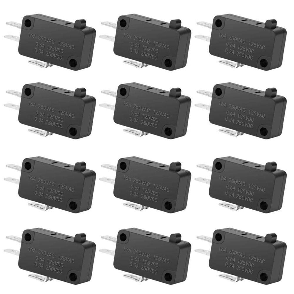 12Pcs 125V/250V 16A SPDT Snap Action Button Useful Black Micro Limit Switch Connector Actuator Microwave Oven Door