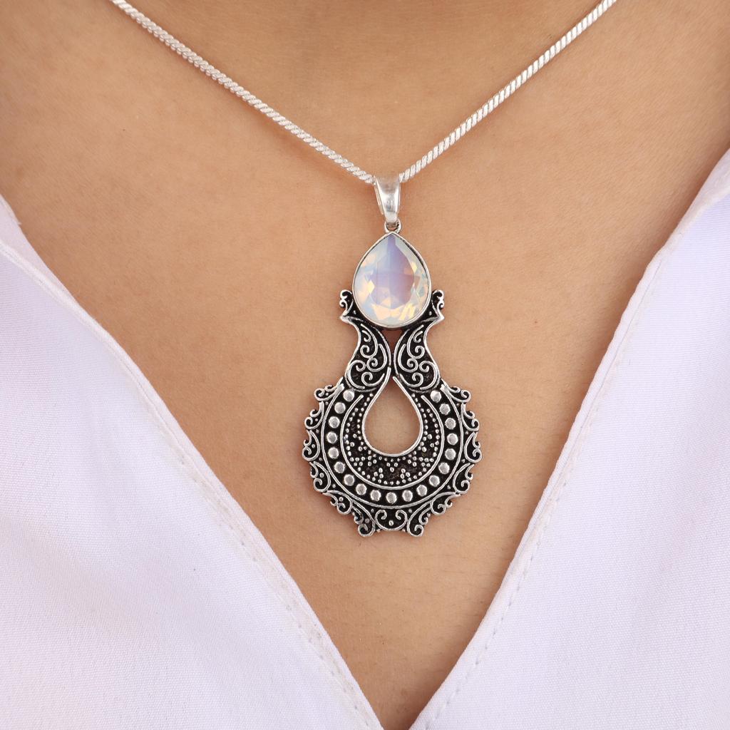 Milky Opal Gemstone 925 Sterling Silver Jewelry Women Wedding Pendant 1.8" For Her CP-45-21
