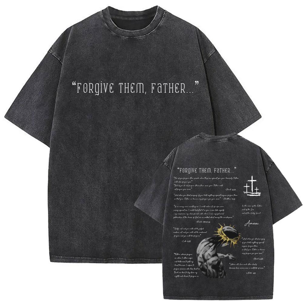 Women Christian Religious Jesus Forgive Them Father Vintage Washed T-shirt Women Gothic Rock Oversized T Shirts Tops