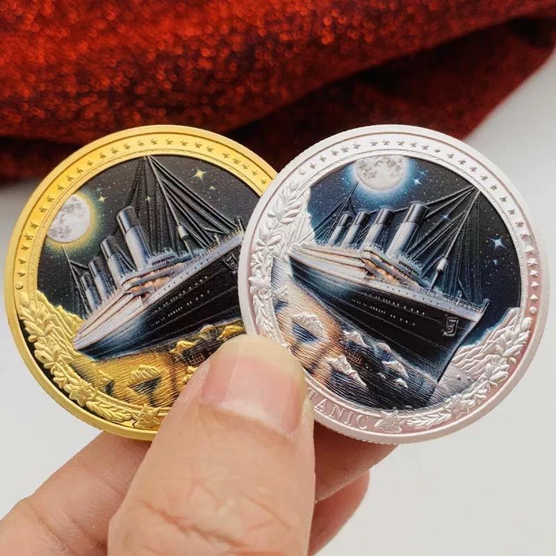 Titanic, ship, silver plated color printed commemorative medal, craft creative coin, souvenir coin