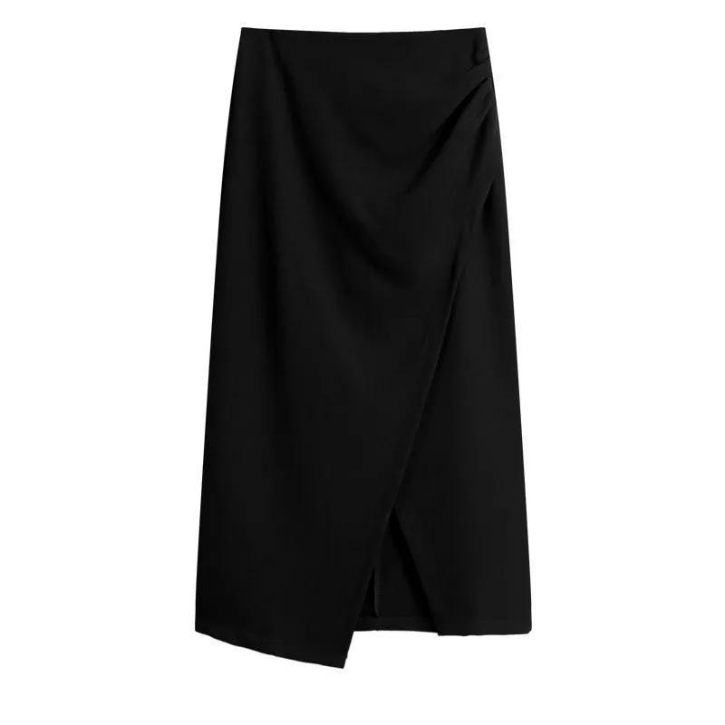 Women's Dark Grey High Waisted Midi Skirt Asymmetrical Wrap Design Office Skirt