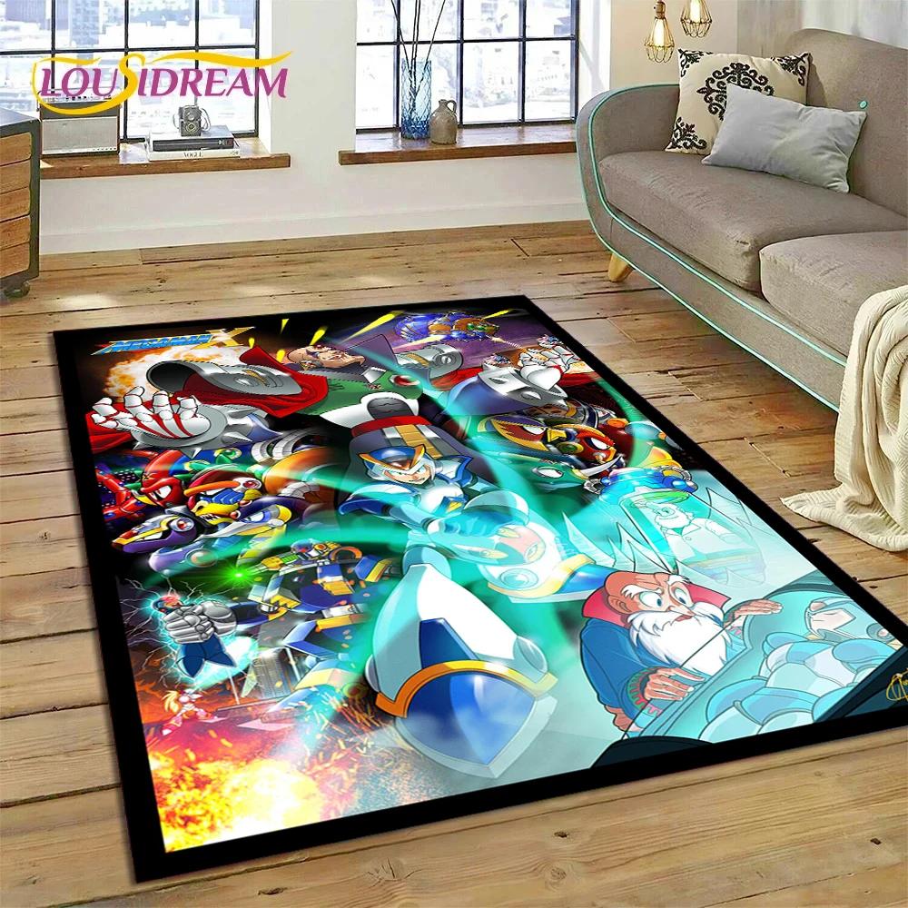 Retro Cartoon Rockman Mega Man Game Carpet Rug for Bedroom Living Room Home Sofa Decoration,Children Play Large Decor Floor Mat