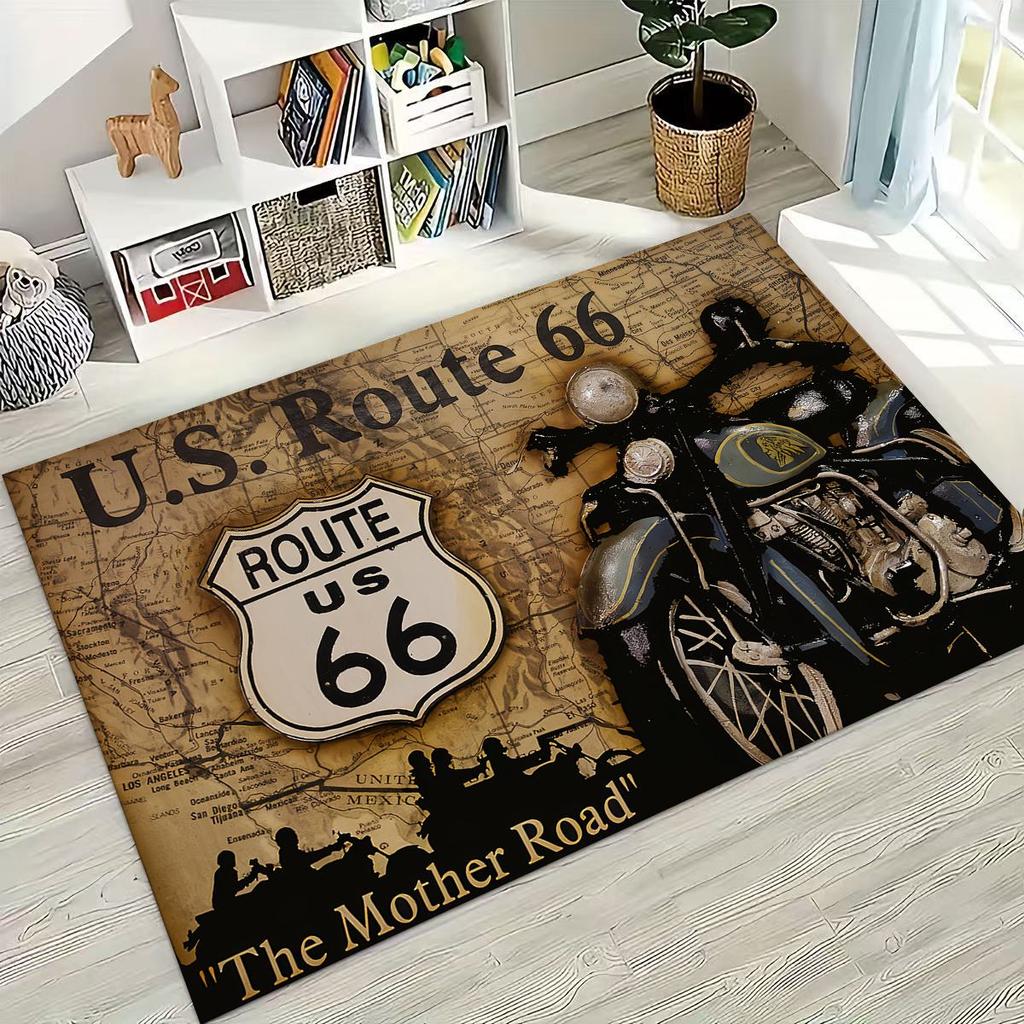 3D Retro Route 66 America Historic Mother Road Rug for Bedroom Living Room Sofa Home Doormat Decor,Larger Kid Non-slip Floor Mat