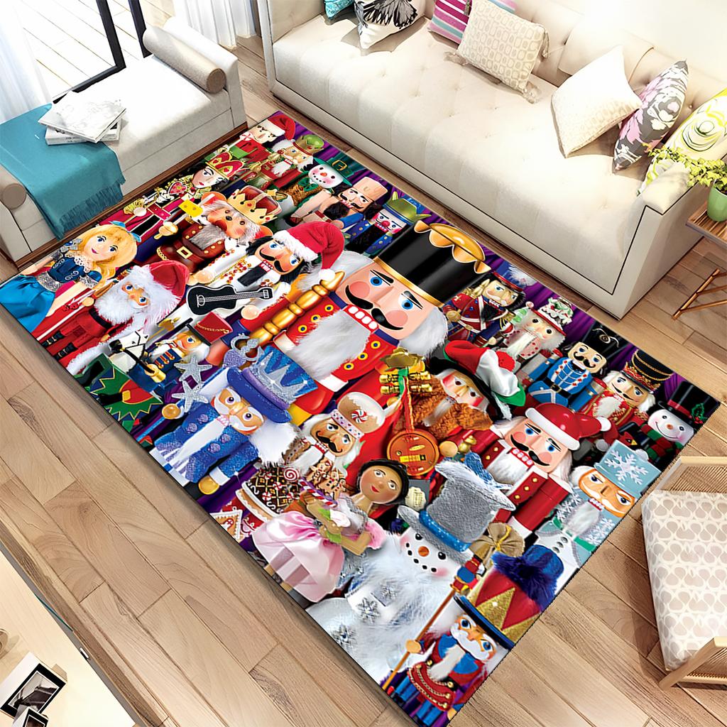Merry Christmas Gift The Nutcracker Cartoon Doll Happy New Year Carpet Rug for Living Room Bedroom Home Sofa Decoration,Non-slip