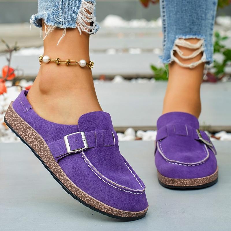 Round Toe Deep Mouth Metal Buckle Wrapped Slippers Winter New Scrub Suede Non-Slip Flat Half-Slip
