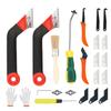 Complete Set for Precise Efficient Cleaning : The set includes a grout saw , serrated knife , scraper , gap chisel , tile scraper , hook knife , metal ball tile finishing tool , grout removal tool , hex wrench and dedicated cleaning accessories . It enables precise and efficient manipulation , easily handling tile renovation in bathrooms and showers , as well as joint widening and grout cleaning