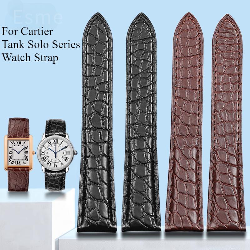 Waterproof Sweatproof Dainty Genuine Leather Watch Strap for Cartier Tank Solo Series Crocodile Watchband 17 22 25mm Balck Brown