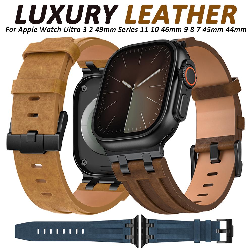 Leather Watch Band for Apple Watch Strap 49mm 46mm 45mm 44mm Luxury Man Bracelet for iWatch Ultra 3 Series 11 10 9 8 7 6 Se Band