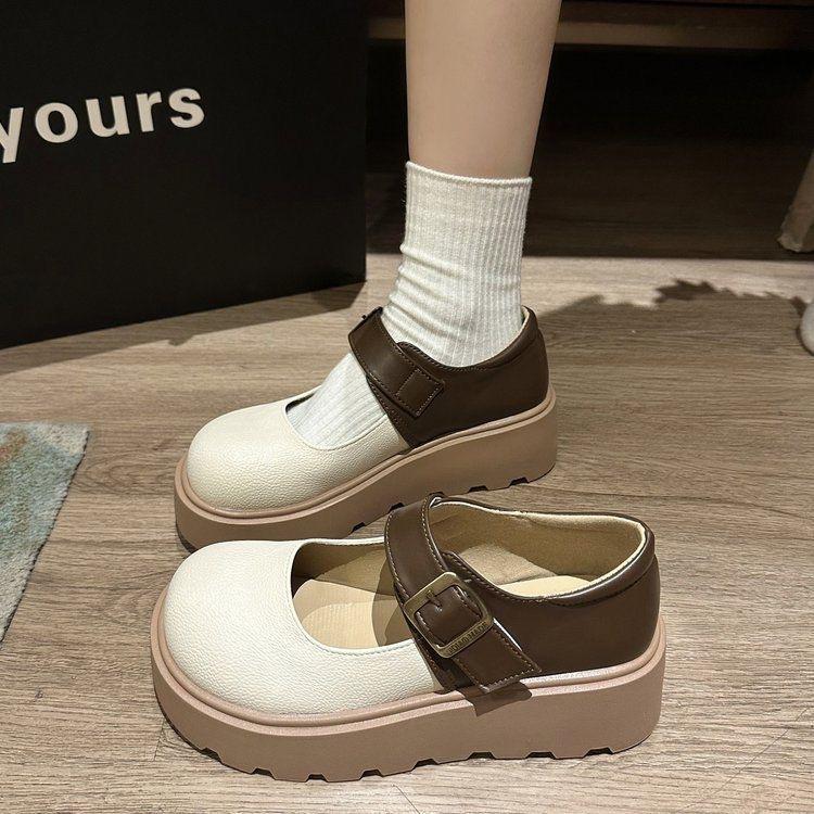 Korean version of casual style round head shallow mouth one-word single shoes, spring temperament increases and shows long legs Mary Jane small