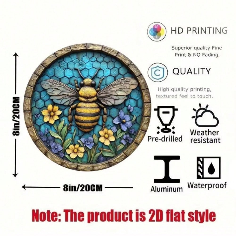 Metal Bee Floral Wall Art Round 2D Printed Sign Home Office Halloween Decor