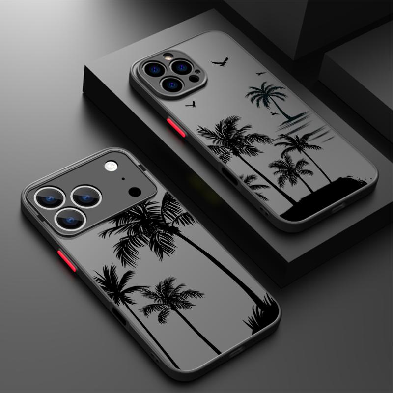 Coconut Tree Case For iPhone 17 15 14 Pro Max Coque iPhone 11 12 13 16 Pro Max Air Luxury Hybrid TPU+PC Hard Back Cover Fundas