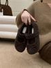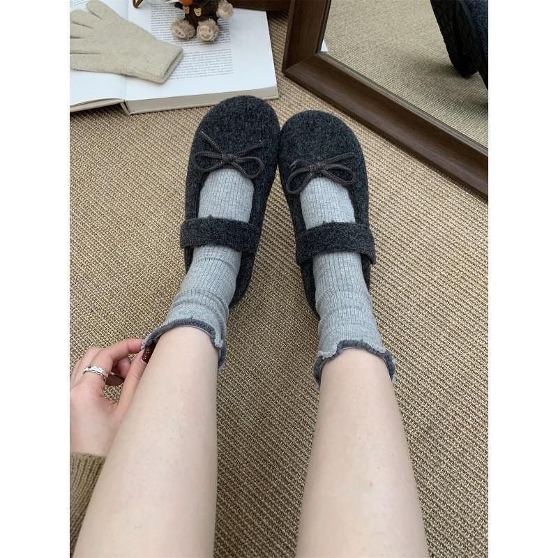Bow gray fluffy shoes winter wear new velvet single shoes flat warm Mary Jane Doudou shoes