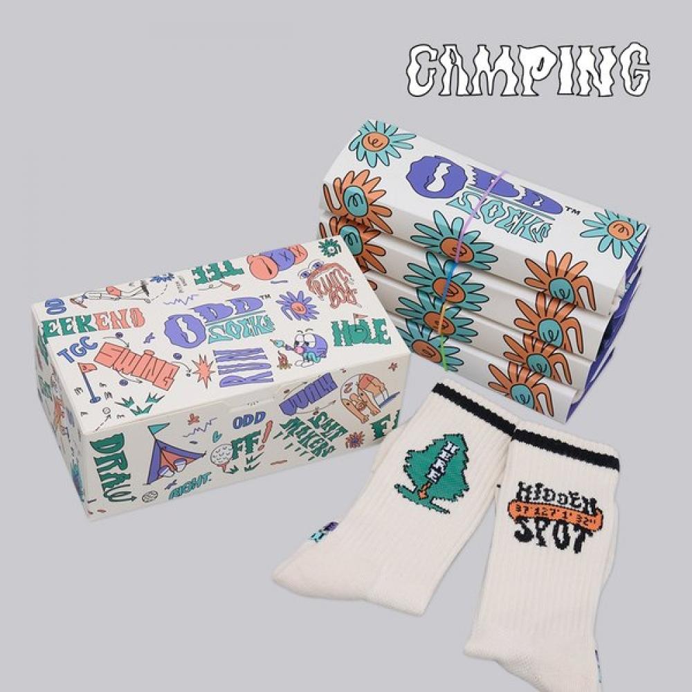 The Coolmax OddSocks Camping Crew Socks (Set of 4) is designed for outdoor enthusiasts who enjoy hiking and camping, featuring a mismatched design. Made with Coolmax material, it offers excellent breathability and comfort, suitable for a variety of outdoor activities. The crew length reaches above the ankles, providing a comfortable fit, while the playful mismatched design emphasizes the camping rubber theme.