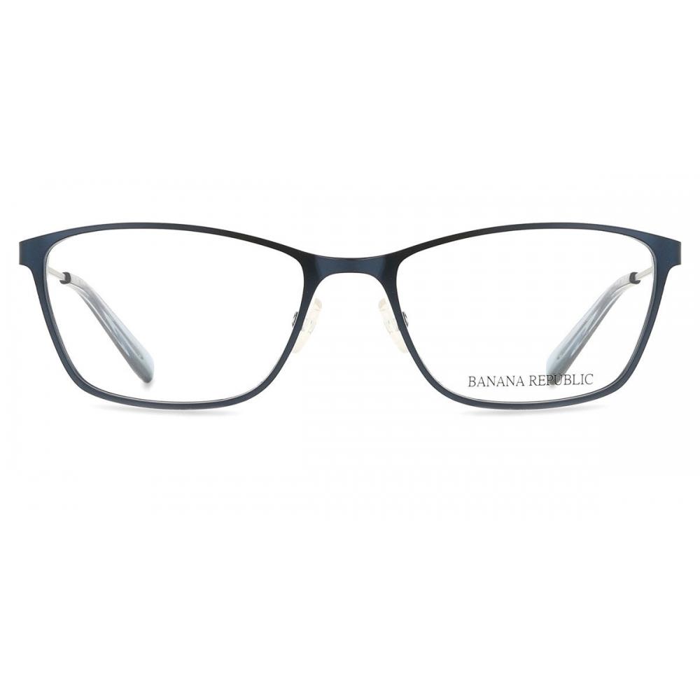 The Banana Republic BR 201 0E8W Women Eyeglasses feature a full-rim design in semi-matte navy color, constructed from stainless steel, making it lightweight and highly durable. The frame shape is rectangular, suitable for casual everyday wear.