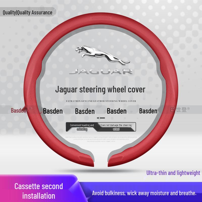 Genuine Leather Steering Wheel Cover for Jaguar E-PACE, XF, XE, XJ, F-PACE - Ultra-Thin Grip