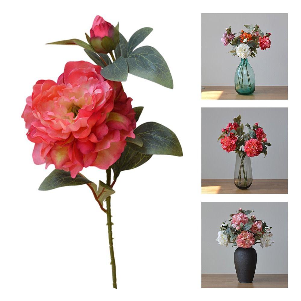 Multicolor Peony Artificial Flower Green Lieaves Lifelike Flower Faux Flower Home Decoration
