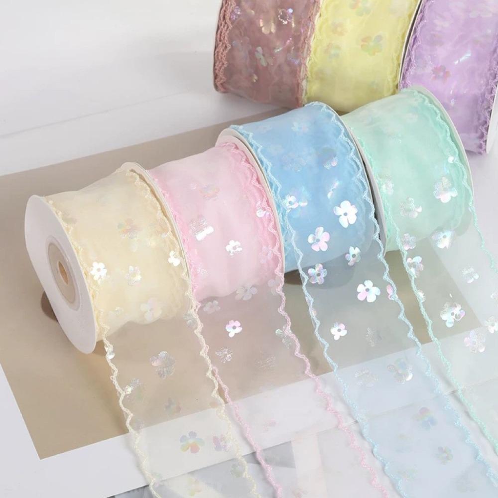 Creative 10 Yards Silk Ribbon Gift Wrapping Bouquets 4cm Gifts Packaging Material Wave Edge Pleated Chiffon Ribbon