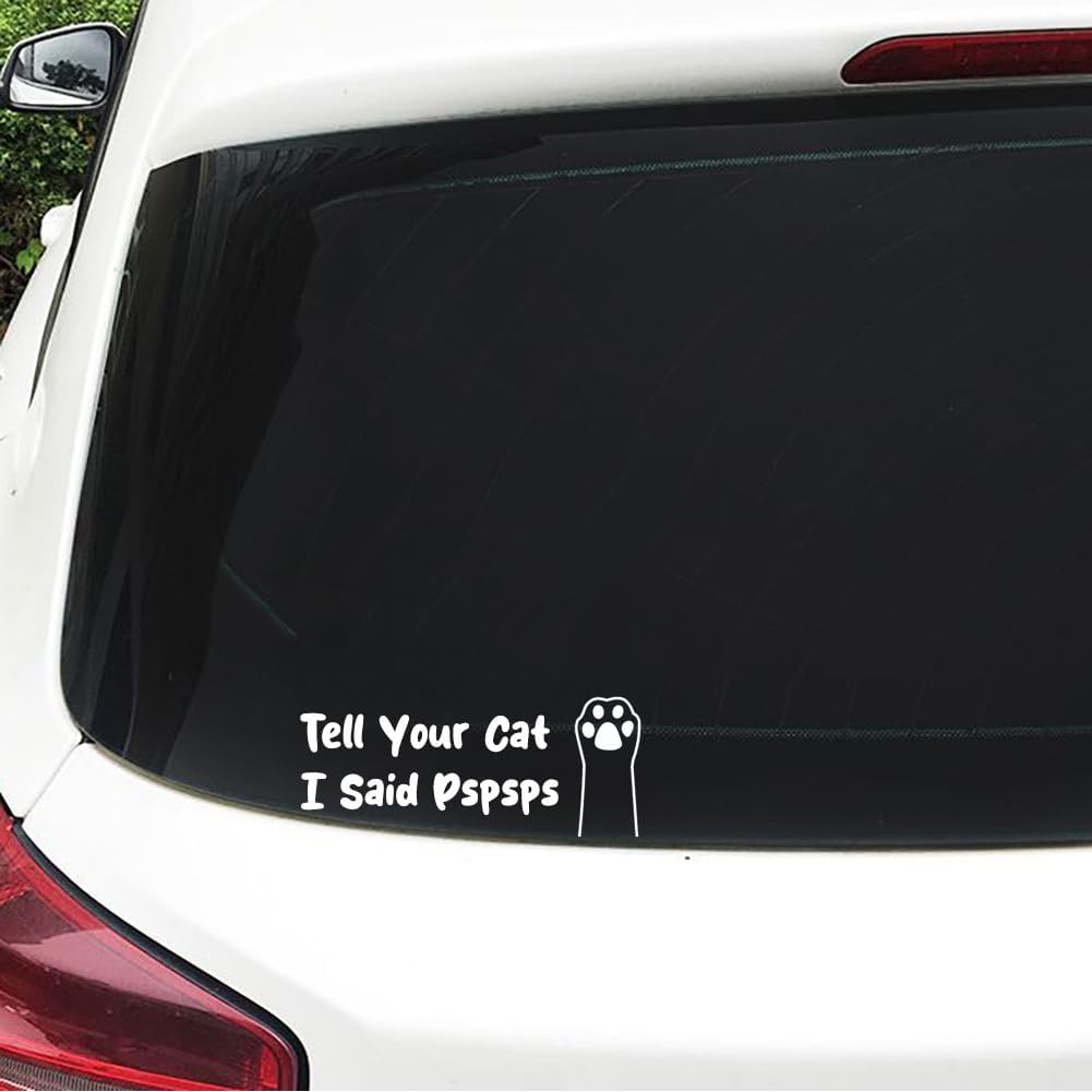 Tell Your Cat I Said Pspsps Car Vinyl Decal Cat Paw Kitten Paw Sticker Funny Window Bumper Decal for Cars, Trucks