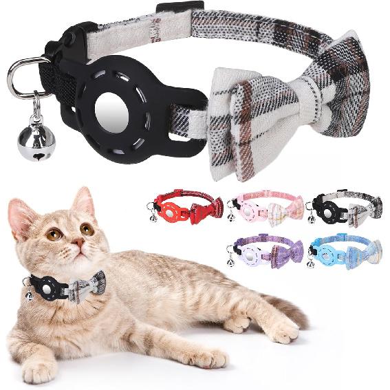 Airtag Cat Collar with Bells and Bowtie -Safety Elastic Band Kitten Collar for Apple Air Tag Holder- Cute GPS Cat Tracker Collars for Girl Boy Cats