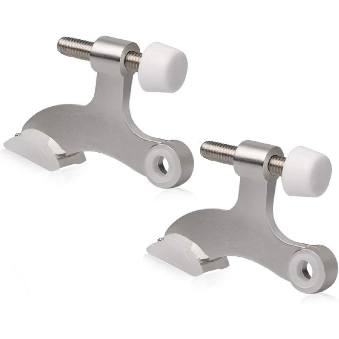 2 Pack Hinge Pin Door Stopper Brushed Satin Nickel - Adjustable Heavy Duty Hinge Pin Door Stop with White Rubber Bumper Tips