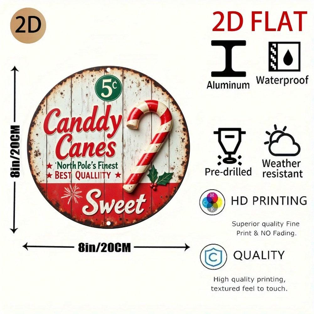 Vintage Metal Tin Sign Candy Cane Stripes Rustic Wall Art Christmas Kitchen Decor