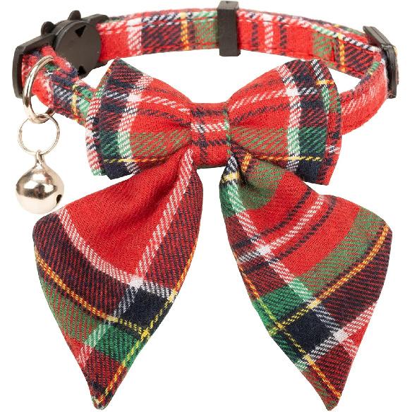 Christmas Cat Collar with Bow Tie Flower Sailor Bowtie Breakaway Safety Detachable Plaid Kitten Cats Pet Cute B Sailor Bow-Red