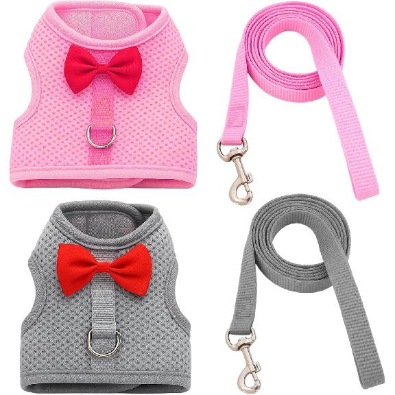 2 Set of Bunny Harness and Leash,Adjustable Bunny Leash for Small Pets. This Complete Rabbit Harness and Leash Set Features Soft Mesh Vests for Safe