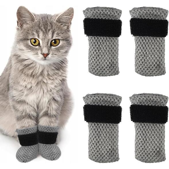 4 PCS Cat Mittens to Prevent Scratching, Adjustable S Size Cat Booties to Prevent Scratching, Breathable Mesh Shoes, Prevent Scratches, Suitable for