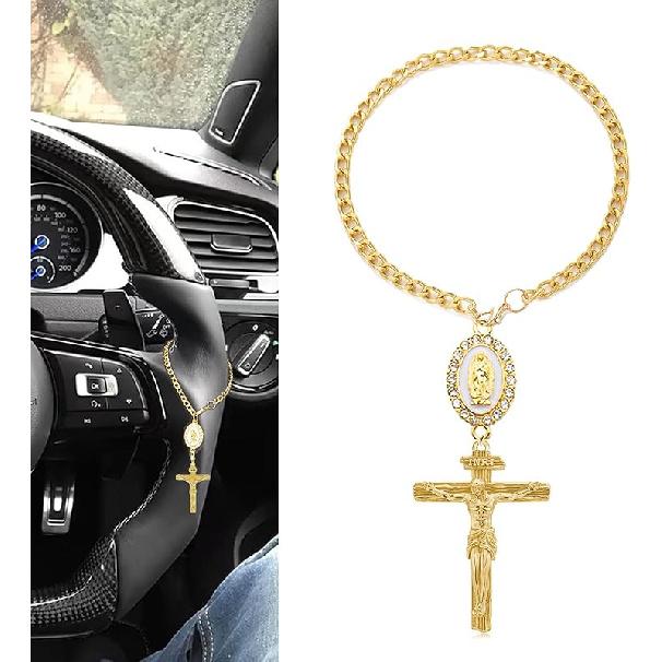 Premium Alloy Material: Crafted from durable, rust-resistant alloy, this Car Rosary Charm Rear View Mirror Hanging Cross retains its shine over time. Sturdy construction resists fading or breaking, offering long-lasting use as both a car accessory and a meaningful necklace. Ideal for daily commutes or spiritual journeys.