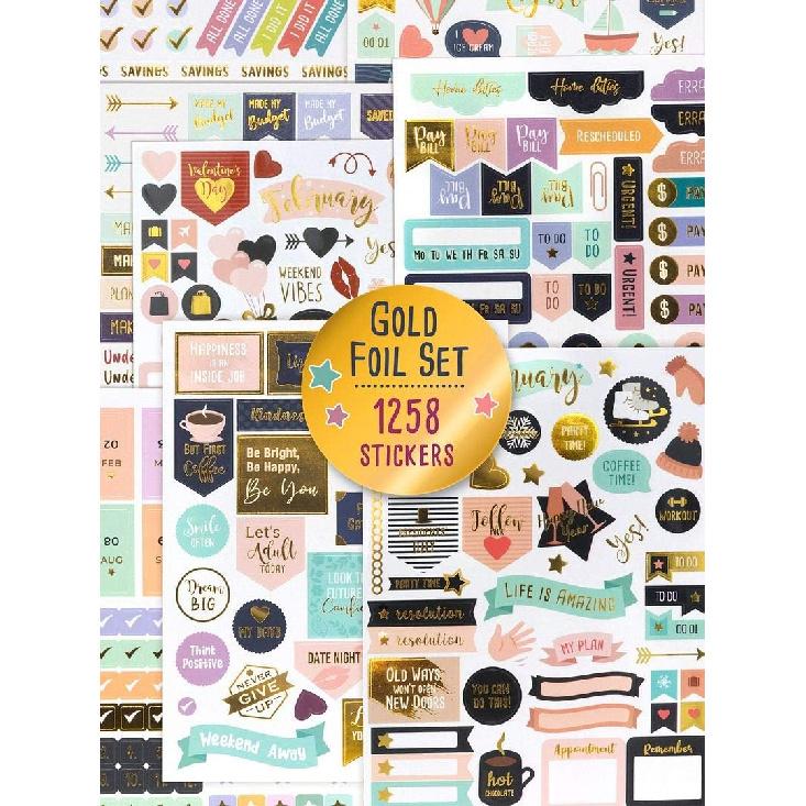 Aesthetic Gold Foil Planner Stickers - 1250+ Stunning Design Accessories Enhance and Streamline Your Planner, Journal and Calendar