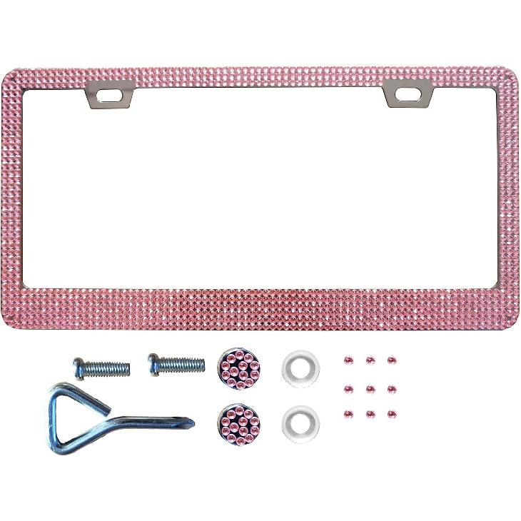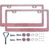 Pink Bling License Plate Frame for Women, Sparkly Rhinestone Handcrafted Crystal Premium Stainless Steel, Stainless Steel Car Accessories with